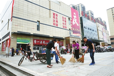 在创建卫生城工作中,凯鸿小区金大爷是一个乐于奉献的志愿者。只要小区里出现小广告,他就主动和社区人员一起清理;广场南边的二楼平台属于环卫盲区,金大爷主动承担随时清扫;路上看到烟头、废纸,金大爷总会弯腰捡拾……