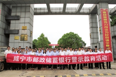 本报讯 通讯员陈琼报道:为进一步筑牢党员干部职工的思想道德防线,增强拒腐防变能力。5月21日下午,邮储银行咸宁市分行组织全市领导干部职工参观监狱进行廉政警示教育活动,市、县行领导班子、中层干部及网点柜员、信贷员共57人接受了警示教育,收到良好成效。