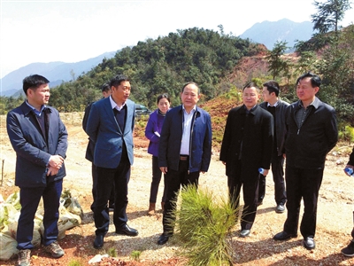 在九宫山国家级自然保护区非煤矿山复绿工程现场,看到“破损”的山体上种上了一排排新绿,尹维真表示赞许。尹维真指出,要进一步强化山体保护,大力推进植绿复绿,聘请专业团队规划造林,同时,要在不破坏生态环境的前提下,因地制宜,大力发展康养、旅游等产业,保障群众收入。