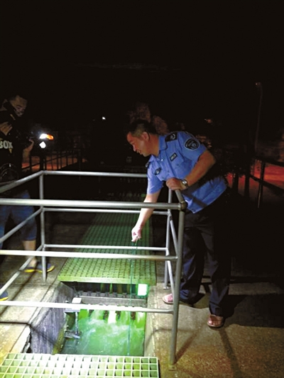 赤壁环保局执法人员夜间突击检测大升公司污水排放情况