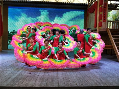 近日,通山县通羊镇双泉社区居民华淑萍,带头率领30余名广场舞队友,自筹资金近3万元,购置乐器,服装道具,自编自演乡土文艺节目20余个,赴广西省阳塑县城区开展舞台广场舞表演,并获得二等奖。 通讯员 张远杰 赵冬平 摄