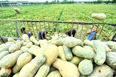 据了解,今年,潘家湾镇南瓜种植面积8万余亩,目前,南瓜已成熟上市,市场行情较好,菜农们也趁着好价格抓紧抢收。