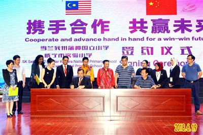 6月19日下午,马来西亚雪兰莪州蒲种国立小学教育代表团一行10人来到咸宁市实验小学交流访问。校长杜小清代表学校与马来西亚雪兰莪州蒲种国立小学代表莫哈达·达米西·宾·马鲁丁 校长签署了合作备忘录,两校缔结为友好学校,未来将在互惠互利的基础上,从学校管理、教育教学、实践活动和学术研究等多个方面开展交流和合作。
