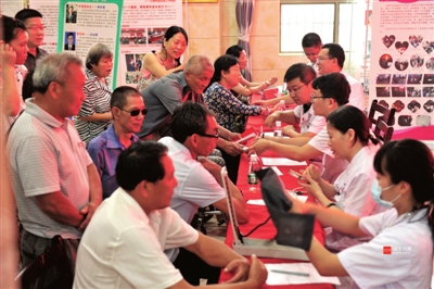 6月30日,来自“湖北省博士服务团”医疗志愿服务队的8名专家,来到咸安区官埠桥镇小泉村和官埠村,为当地群众义诊送药。
