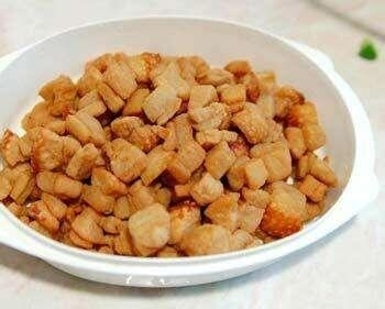 将猪肉切成两三厘米见方的小块,清洗干净。放入炒锅中,加入小半碗水,大火熬开。然后转小火慢慢熬即可,熬30分钟左右。