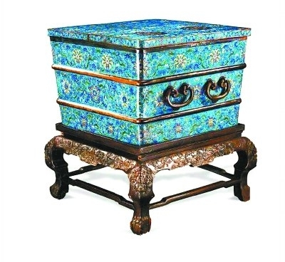 采用这种原理运行的冰箱一直被上层贵族们使用,清代晚期的大户人家常常可见用红木、花梨、柏木等名贵木料制成的木胎冰箱,其中以故宫博物院现藏的清代乾隆掐丝珐琅冰箱最为有名。掐丝珐琅冰箱四角包镶掐丝珐琅并饰以兽面纹,底部阳刻楷书“大清乾隆御制”六字,冰箱通高76厘米,从上而下分为箱底和箱座两部分,从里到外分别是珐琅装饰、木胎和铅里。使用时在隔层填冰达到冰镇效果,向里通过铅层隔热保温,向外通过盖面刻制的钱纹孔散发冷气以降温。冰箱底部一角有一个小圆孔,用作冰化时候的泄水。