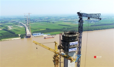 16日上午9:30分,嘉鱼长江公路大桥主塔成功封顶,即将进入主桥钢箱梁安装和桥面施工阶段。