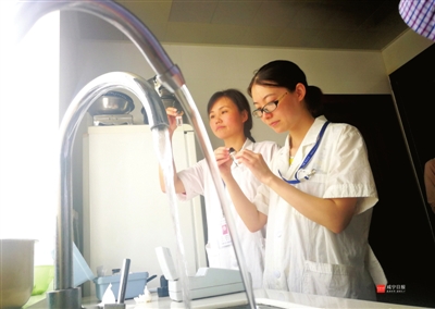 28日,咸宁联合水务有限公司、市疾控中心的技术人员在城区曦园居民家中检测自来水水质情况。