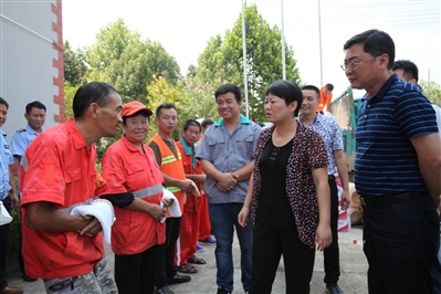 来到文体中心、城南指挥部施工现场和昌华实业有限公司,杭莺、郑俊华向工人们送上清凉饮料和防暑降温用品,并向施工单位负责人详细了解了工程建设情况,嘱咐施工方,切实做好一线工人的防暑降温,在抢抓工程进度的同时,安排好工人的生产、生活,避开高温时段施工,做好安全保障措施,确保施工安全和工程按期完成。