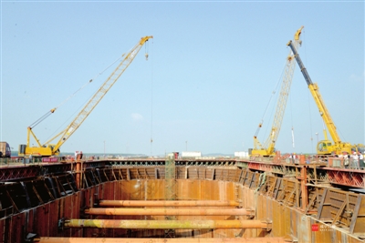 据介绍,该桥总桩数1379根,目前已完成646根。其中主桥桩基完成93%,1#边墩、2#辅助墩承台施工完成,3#、4#主塔墩即将开始承台施工,预计9月底施工完成。北岸引桥桩基完成51%,南岸滩桥桩基完成69%,南岸跨堤桥桩基完成56%,承台完成25%;南引桥桩基完成85%。