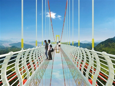 9D高空玻璃吊桥,采用超现实视觉9D技术,配以惊险刺激的特技效果,将视觉、听觉、触觉和动感完美融合,行走桥面如凌空漫步。
