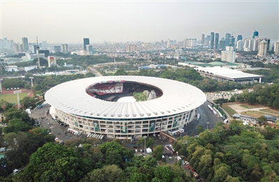 这是8月16日拍摄的朋加诺体育场。 8月18日晚,第18届亚运会开幕式将在朋加诺体育场举行。 据新华社