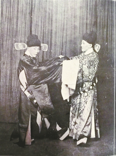 慈禧太后继承了丈夫的遗志,在宫内又先后培育出两个顶级票友——同治帝与光绪帝。同治皇帝载淳自幼不喜读书,只喜听戏,据丁汝芹《清代内廷演戏史话》记载,载淳十来岁的时候便学唱戏玩,后来长大了便当京剧票友,特别爱“票”武生戏,据说能扎上“大靠”扮《黄鹤楼》里的赵云。有一回,同治帝跟会唱戏的小太监组成的“本家班”一同演出,由太监伶人中的佼佼者印刘(刘得印)扮演刘备。同治帝扮着“赵云”上场,一见刘备便念道:“参见主公!”并行了个礼。这一行礼可不得了,吓得“刘备”趴伏在地,连连叩头赔罪道:“奴才不敢!奴才万死!奴才万死犹轻!”这一下同治帝可恼了:“这是唱戏!你要这么搅戏,这戏还怎么唱?”据说同治帝还能唱短打武生戏《白水滩》,扮武生十一郎。载淳唱戏的故事自然不见于正史,只在一些记录清宫旧闻的书中有所记载,聊作一听。
