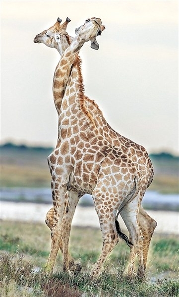 美国一名摄影师捕捉到了纳米比亚两只长颈鹿凶悍搏斗的惊人画面——雄性长颈鹿以脖子作为武器,甩动脖子击打对手,以争夺在种群中的地位。