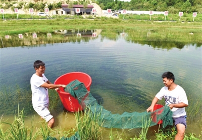 兴产业,促民增收。想致富,产业先行,该村以土地入股,让“村民”变“股民”。村民以土地入股后,产业发展出现亏损或无盈利时,由合作社保证土地入股村民的最低租金收益;产业获得收益时,贫困户或村民可根据各自入股土地份额获得对应分红。以资金入股,让贫困户、村民挂靠产业。以村同富公司的名义把扶持资金入股合作社,让无劳动能力、无资金、无技术的“三无”贫困户挂靠产业,固定享受从同富公司收益中分配的产业红利。其他村民以资金入股同富公司的,按比例自负盈亏。以劳动力入股,让村民勤劳致富。在基地建设、管护、采收、销售等方面,为有劳动能力的贫困户提供家门口就业机会,每天吸纳50多人务工,每天每人收入可达120元。