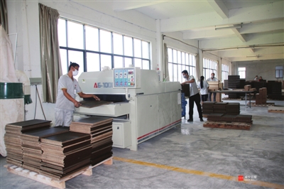 9月3日,湖北洪茂木业有限公司员工在精心制作木制品。