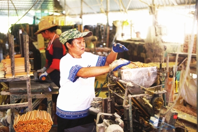 近年来,洪港镇依托当地资源优势,引导贫困户发展瓜蒌、楠竹加工等特色产业。目前,全镇发展瓜蒌2100亩,引进楠竹加工企业3家,先后带动420户贫困户实现脱贫。