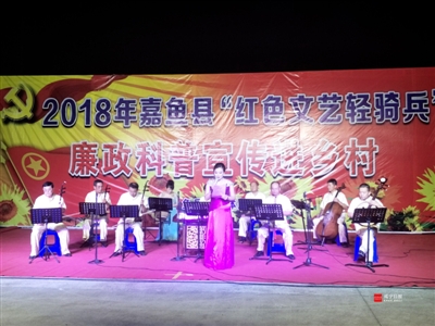 8月30日,嘉鱼“红色文艺轻骑兵”大篷车廉政宣传走进鱼岳镇梁家山社区。