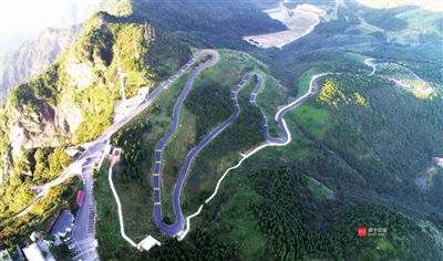 5日,鸟瞰S209咸通线九宫山路段,宛如一条挥洒飘逸的彩带。