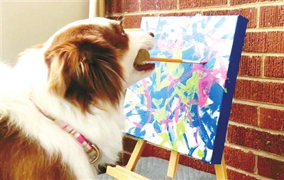 Ivy来自美国北卡罗来纳州夏洛特,是一只澳大利亚牧羊犬,与大多爱闹爱跳的狗狗不同,Ivy天生是个安静的“艺术家”,堪称汪界“毕加索”。它最喜欢的就是趴在家里的画架前,用嘴咬着画笔作画,还是抽象艺术派的。据主人介绍,Ivy每周只会画一次,如果给它一些鸡胸肉吃,一个月便能完成一幅作品。Ivy的所有作品都通过拍卖的形式售出,主人则会将这些钱捐助给慈善机构。