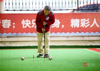 10月14日,咸安区举行迎重阳老年门球赛,全区共16支代表队140人参赛,以饱满的热情迎接第六个法定老年节的到来。 通讯员 吴涛 摄