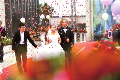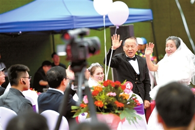 鲜花、拱门、红毯、签名墙……看着中建三局员工们精心布置的婚礼现场,老人们个个精神抖擞,脸上洋溢着幸福的笑容。