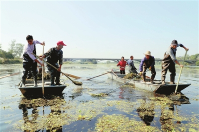 9月19日起,县河库长制办公室组织打捞队伍,连续作业清理河道水葫芦,打捞范围从二桥上游150米处到茅井畈上渡口,河道长约18公里。至目前,出动各类打捞船只20多艘,打捞人员40余人,共计500余吨水葫芦已经全部打捞上岸。