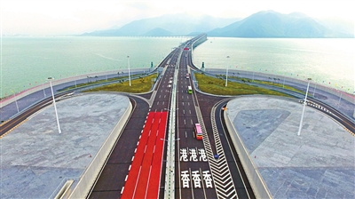 10月24日,车辆从东人工岛出隧道后,向香港方向行驶(无人机拍摄)。