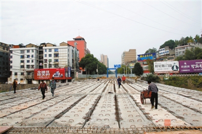 该桥由华东建设工程集团公司承建,桥梁全长80米、宽22米,两边设人行道与护栏。日前,大桥桥梁、桥面吊装成功,进入铺砌装修阶段,预计2019年元旦前建成通车。