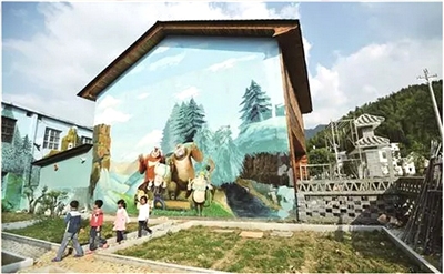 群山环抱,小桥流水,白墙青瓦,杨柳依依。崇阳县铜钟乡大岭村易地搬迁的新村沿河而居,房舍整齐划一,干净整洁。车行其间,如在画中。突然,熊大、熊二迎面跑来,光头强在后面紧追不舍,定睛细看,原来是墙上的涂鸦。秋收杮子、海底世界……这样的涂鸦还不少,自从有了这些涂鸦,不仅村子变漂亮了,还吸引了不少游客。走在大岭村,就像穿行在童话王国,别有一番味道。