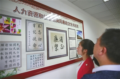 “风清气正,惠风和畅”;“咬定青山不放松,立根原在破岩中”……日前,赤壁市人社局机关廉政文化墙焕然一新,一幅幅图文并茂、色彩鲜明、寓意深刻的廉政书画作品吸引人们驻足观看。
