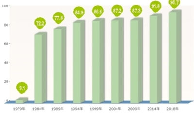 1979—2018年全市个体私营市场主体占市场总量发展趋势图