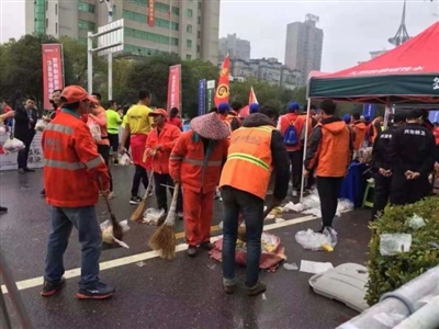 整个城区当天上午安排480多名环卫工人上班之外,咸马路线又特意增加60人做专项保障工作。并按照赛道功能点布置,沿线安排16个保洁点位。