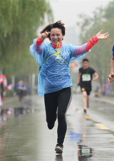“快看,‘微马’女子冠军来了。”在“微马”终点,男子冠军刚刚诞生,一位短发女生就紧追其后,在“微马”女子组的角逐中第一个冲过终点线,获得冠军。
