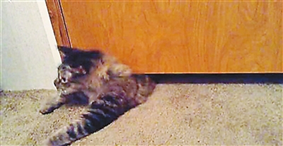 视频中,这只猫先伸出爪子,透过门缝抓住另一面门板,然后伸出右爪努力寻找支撑点来帮助自己其他身体部位发力。随后它设法将头挤过门缝,努力扭动身体通过狭窄的门缝。最后,它把身体其余的部分也拉了出来,奇迹般地实现了穿缝而过。