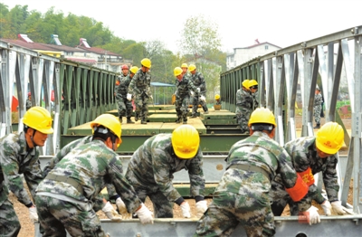 活动模拟暴雨后,公路养护巡查人员发现三眼桥被暴雨冲垮,交通中断,赤壁市公路局经向市公路局请示,立即启动公路桥梁三级应急预案。几部门协同作战,耗时20多分钟,将ZB-200型装配式公路钢桥成功拼装,保障公路交通应急畅通。通过演练,提高公路部门应急处置能力,将应急抢修常态化、专业化。