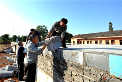 7日,赤壁市柳山湖镇冷冻物流园,工人们正在加紧建设冷藏库。