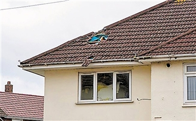 11月3日晚,住在英国布里斯托尔市一所公寓的希恩正和他的朋友贾维斯看电视,忽然听到卧室里传来“爆炸声”。他们赶紧冲上楼,以为是一团焰火冲破卧室玻璃,却在屋顶和天花板上看到一个巨大的裂口,地面上散落着像足球那么大的冰块。