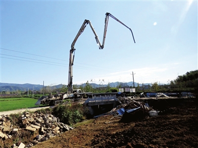 在新店镇施工现场,项目建设方相关负责人王奇在督导工作。王奇称,新店镇是所有乡镇中进度较缓慢的,因该镇情况特殊。
