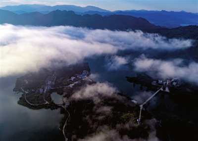 深秋的清晨,笔者利用无人机航拍下通山县厦铺镇望江岭水库。其景色大气磅礴,青山、云海、蓝天共一色,彰显了大自然美妙的景色。