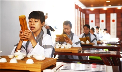 日前,崇阳县当代教育研学基地内,当地学生身着汉服朗读《三字经》。近年来,崇阳县利用浪口温泉优良环境,建设当代教育研学基地,吸引不少当地及周边孩子在这里接受国学传统文化。