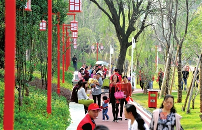 “秀水公园以‘一廊串五区,一心引多点’为空间布局,每个区的功能和设施可以满足不同年龄层次的群众在生态、文化、教育、休憩、娱乐等方面的需求。”通城县园林绿化管理局负责人岳军介绍。