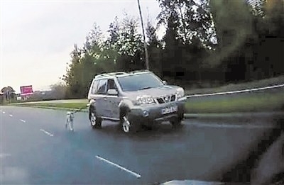 11月1日上午,在英国大曼彻斯特郡罗奇代尔市,一位不知名的狗主人被拍到一边开车,一边遛狗。视频中可以看到,这只疑似为惠比特犬的小狗被一根从打开的车窗外伸出的绳子拽着,狗主人在大型车来往频繁的工业园区道路上行驶,可怜的小狗只能跟着车子疯狂地向前跑。