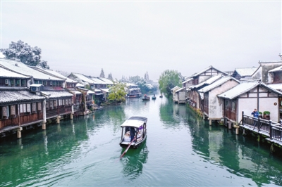 受冷空气影响,浙江省桐乡市迎来大范围降雪,千年古镇乌镇被厚厚的白雪覆盖。小桥流水、白墙黑瓦的江南水乡古镇,呈现出冬日雪乡的独特韵味,吸引各地游客前来观赏。