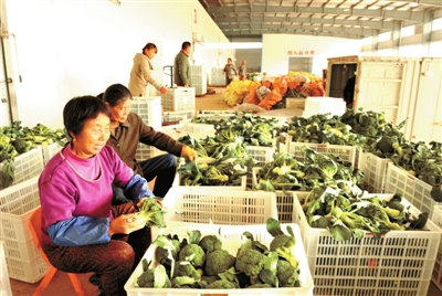 该公司冷库可储存600吨蔬菜,以龙头企业带散户的模式保持菜价平稳,避免菜价低伤农,同时确保低温冰雪等恶劣天气蔬菜供应,让市民吃上平价放心菜。