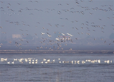 如今每年的11月至次年3月,大批天鹅、鸿雁、东方白颧、豆雁、白琵鹭等珍稀候鸟在此越冬觅食。此地成为候鸟的天堂。