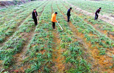 元旦前夕,崇阳县铜钟乡马桥村16组,当地农户正在药材基地里除草。