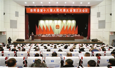 本报讯 特约记者沈忱、陶然报道:1月8日上午,崇阳县第十八届人民代表大会第三次会议在天城剧院隆重开幕。