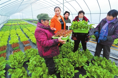 三年前,张晓明引入有机活体盆栽蔬菜及工厂化穴盘育苗的种植技术,围绕“鲜”字做产业,创建了蔬菜新鲜度零损耗特色农业基地,实现日供300盆栽活体蔬菜的能力。基地的发展也带动了贫困户增收,目前共有8名贫困户在基地打工学艺创收,实现家门口就业。