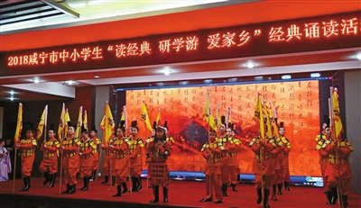 为在研学旅行中突出主题,市教育局联合相关部门举办“读经典、研学游、爱家乡——2018年咸宁市经典诵读活动”,全市30余所学校、近700名学生参与展演,将“起点阅读”“朝读经典”和“研学旅行”相融合。